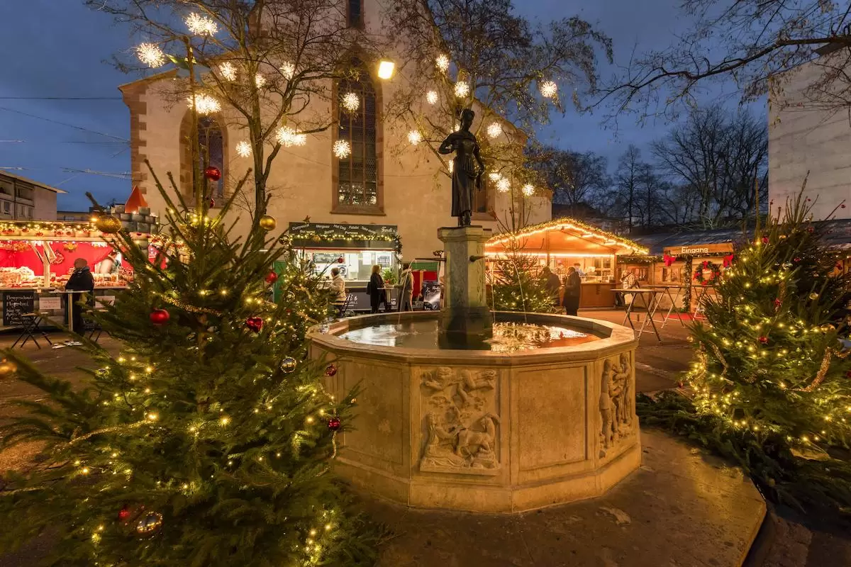 Freiburg’s market spreads across several locations in the historic Old Town, including the Rathausplatz (Town Hall Square). The charm of the Gothic architecture and the famous Bächle (small water channels) running through the streets are enhanced by the festive lighting. You will find the traditional German fare as well as regional products that celebrate the Black Forest, such as Glühwein from local vineyards, handmade wooden carvings, and traditional items like Spätzle (a type of soft egg noodle) and the famed Lange Rote (a long, red bratwurst that is a local icon). The market also features activities like a carousel and, traditionally, a candle-dipping workshop where visitors can make their own unique Christmas gifts. It takes place from November 20th to December 23rd, 2025.