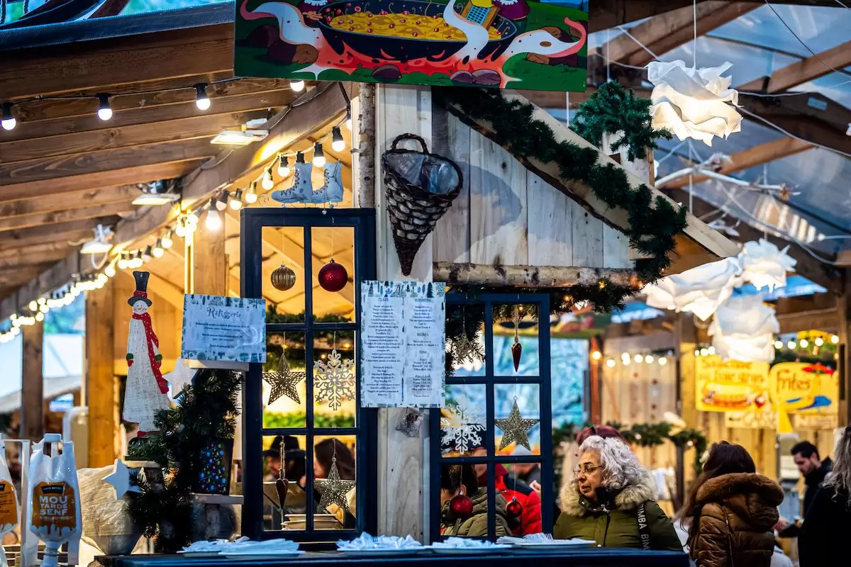Known locally as “Montreux Noël”, this market takes place from November 20th to December 24th, 2025 and is set along the Lake Geneva promenade. It features over 170 decorated stalls offering local crafts, seasonal gifts, and winter treats. You can also enjoy ice skating, festive workshops, and a magical show of Santa Claus flying over the market. A large Ferris wheel adorns the Market Square (Place du Marché), providing panoramic views of the market, the lake, and the mountains. You’ll also find a wide selection of festive Swiss food available, including fondue, raclette, mulled wine, grilled sausages, and traditional sweets.
